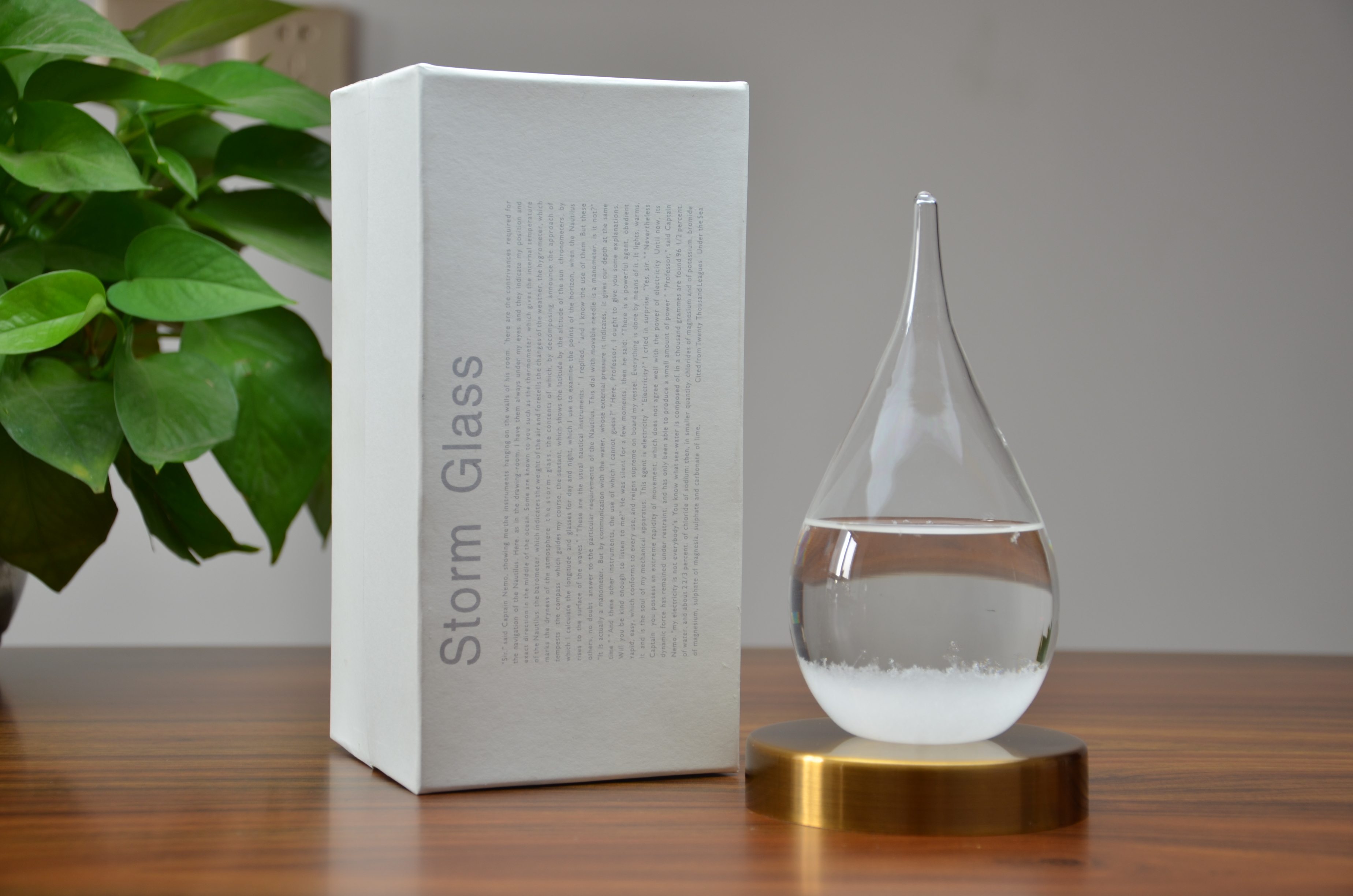 | Nombre del producto | 2020 Clear Weather Predicción Original Waterdrop Storm Glass Barómetro con base metálica |